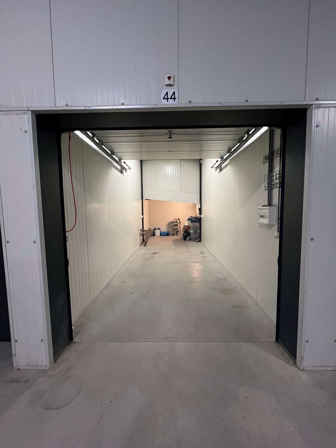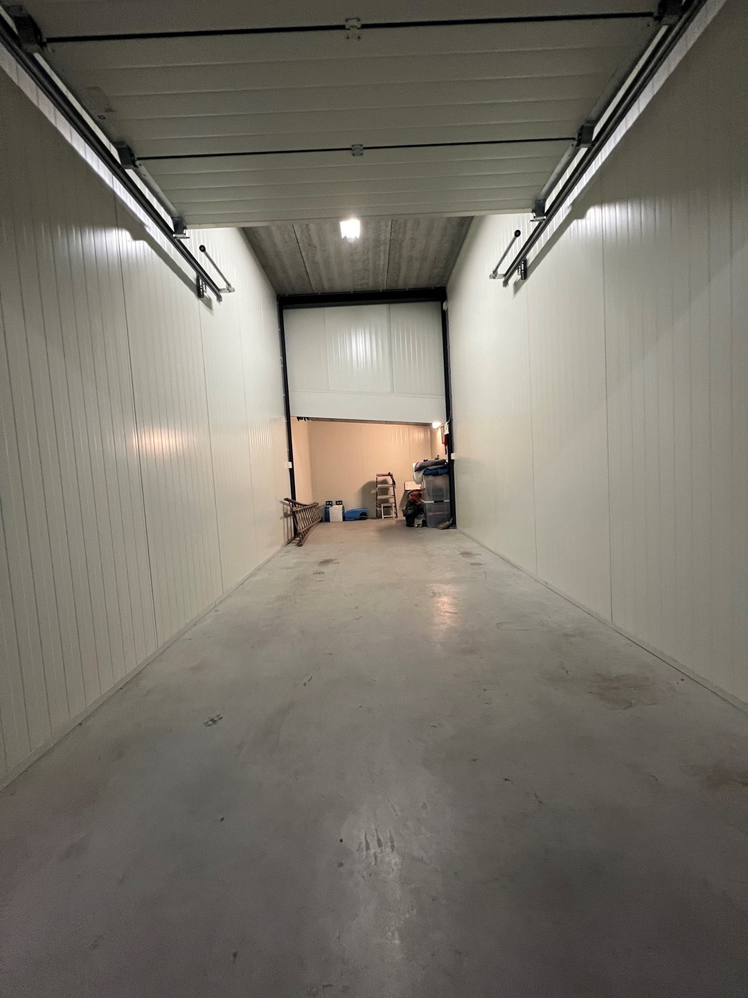 Deze box bestaat eigenlijk uit twee delen. Het eerste deel is 6,4 meter diep en 2,8 meter breed en is 4 meter hoog. Deze voorzijde van de box is voorzien van een geïsoleerde overhead deur. Het tweede deel is 2,25 meter diep en 2,8 meter breed hier loopt de hoogte van 2,3 meter af naar 2 meter. Dan zit je dus op een totaal van circa 24 m2 hobby-, werk- of stallingsplezier. Als je zou willen plaats je om een verdeling te maken eenvoudig een wandje. Indien je dit uitvoert met glas en loopdeur heb je een verdeling in een kantoortje en een werkplek. De box is geïsoleerd en lekker compleet. Vanzelfsprekend zijn er water en elektra aanwezig. De betonnen vloer kun je maximaal belasten met 2000 kg/m². In het complex is een gezamenlijk te gebruiken toilet aanwezig voor zowel heren als dames. Het bouwjaar van deze knaller is 2011.