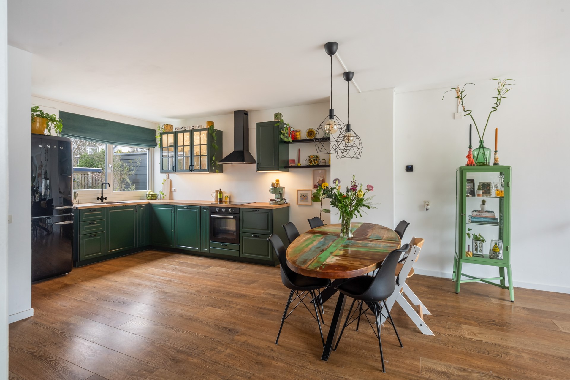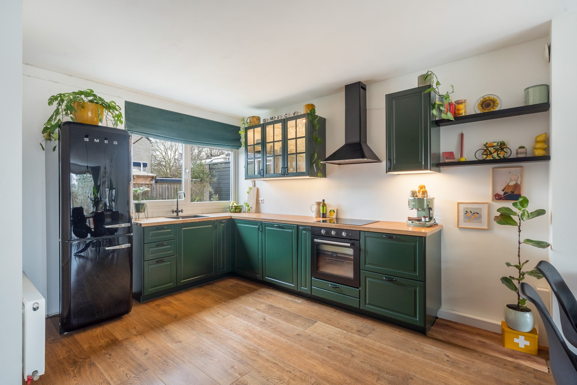Stap binnen in de hal met meterkast, garderobe (want ergens moet je jouw jassen en die van je gasten kwijt) en toilet. Hierna loop je door naar de woonkamer. Dankzij de grote raampartijen is het heerlijk licht en heb je zicht op het groen aan de achterzijde van de woning. De open keuken aan de voorzijde is modern, functioneel en biedt genoeg ruimte om een sterrenmaaltijd te bereiden terwijl je contact houdt met de visite aan de eettafel.