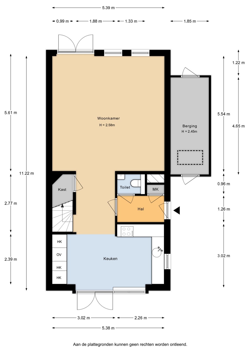 Kijk voor de afmetingen op de plattegronden. Ondanks de uiterste zorg die zowel makelaar als opdrachtgever aan de tekst en plattegronden besteden kunnen hier geen rechten aan ontleend worden en zijn deze voor informatieve doeleinden. U bent van harte welkom om de woning te komen bezichtigen.