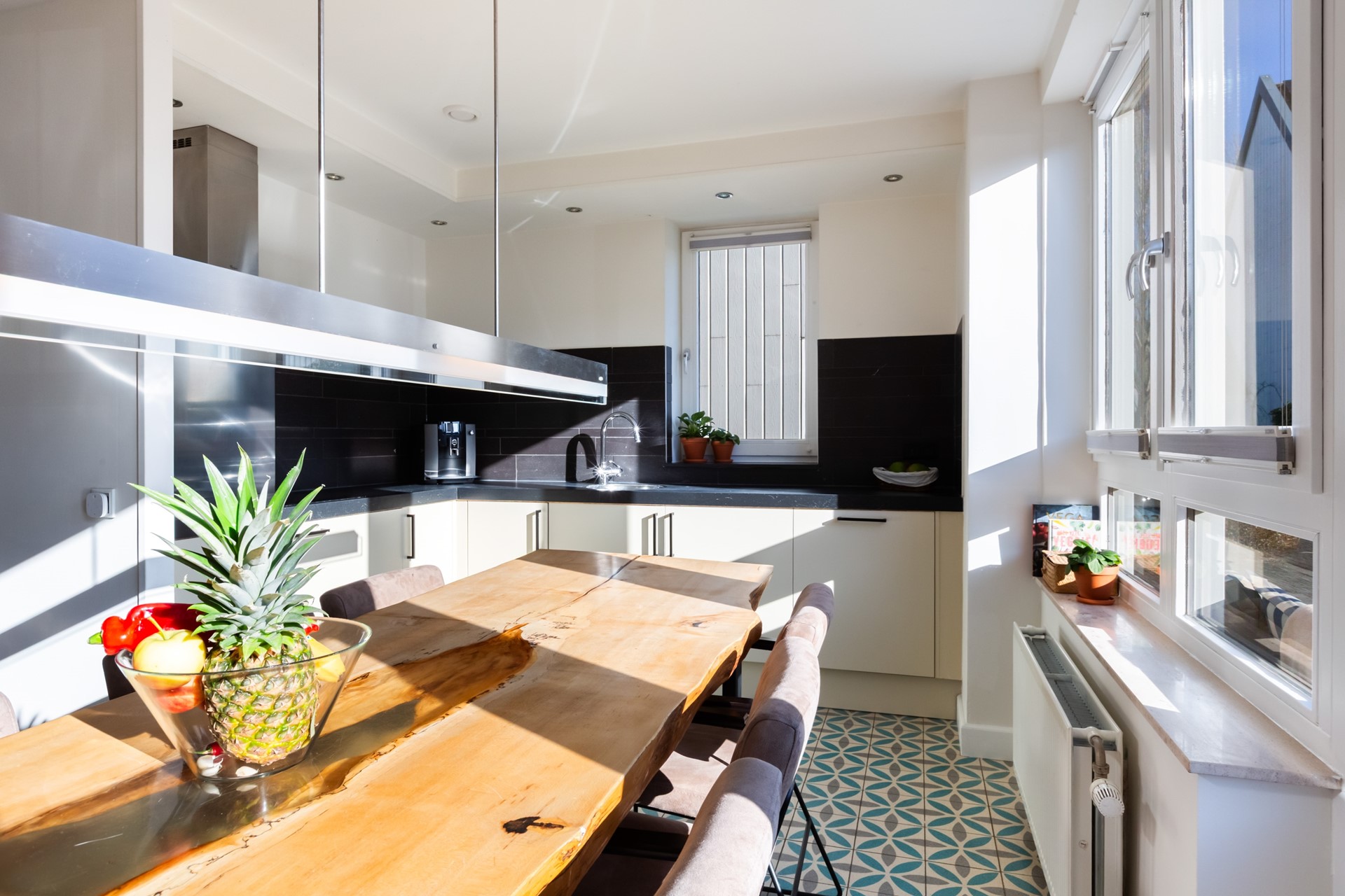 Je stapt binnen in een lichte hal met toilet en garderoberuimte. De woonkeuken aan de straatzijde is het hart van het huis: ruim opgezet en perfect voor lange ontbijten en gezellige etentjes. Terwijl jij je uitslooft achter het fornuis, zwaai je naar de buren of houd je een oogje in het zeil op het hofje. Aan de tuinzijde bevindt zich de royale woonkamer met grote raampartijen en openslaande deuren zorgen voor een fijne verbinding met buiten. De ruimte voelt open en uitnodigend, ideaal voor gezinsleven én ontspanning.