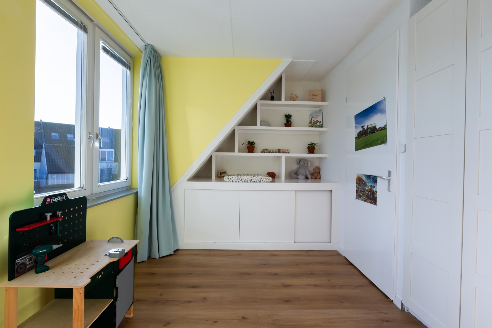 Nog meer ruimte! Extra slaapkamers of een multifunctionele verdieping waar je alle kanten mee op kunt. Denk aan logeerkamer, speelzolder of werkstudio. Met vijf slaapkamers in totaal groeit dit huis moeiteloos met je mee. Hier is ook een berging waar witgoed is opgesteld.
