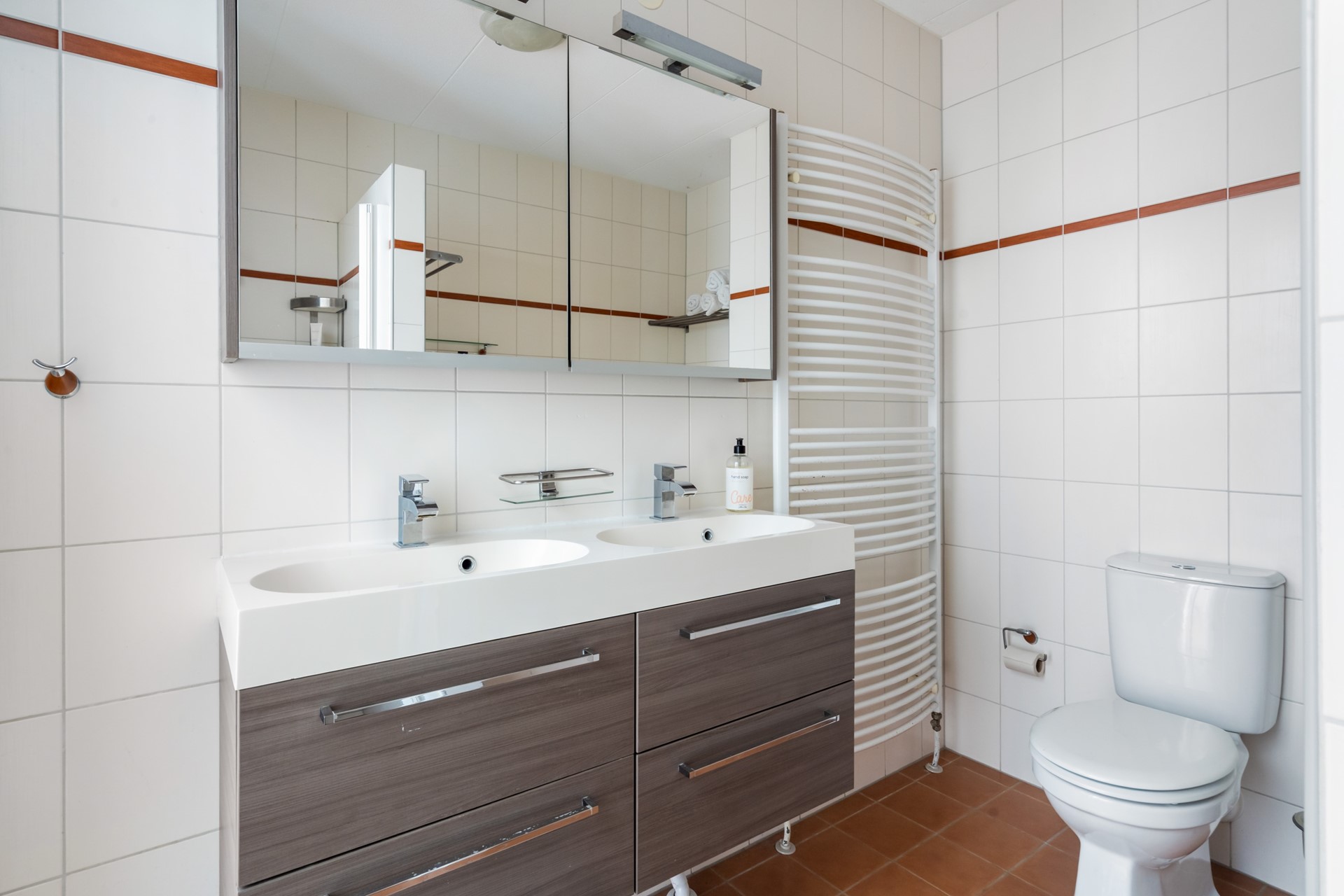 Wat een royale ruime overloop met glas van de vloer tot aan het plafond. Deze is zo ruim dat je er met gemak een lichte werkplek inricht. Daarnaast zijn er op deze verdieping drie royale slaapkamers en een nette badkamer. De kamers zijn ideaal als kinder-, werk- of logeerkamer. De badkamer is netjes afgewerkt en beschikt over een douche, badkamermeubel met dubbele wastafel, ligbad en een tweede toilet. Ruimte en comfort gaan hier duidelijk hand in hand.
