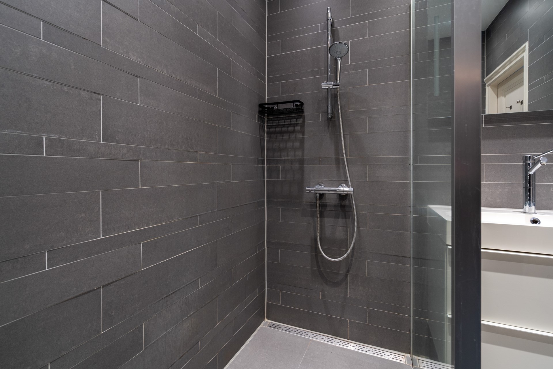 Entree/hal met handige opberg-/voorraadruimte waar ook de cv-ketel en de wasmachine staan opgesteld. Aan het einde van de hal is het toilet gerealiseerd. Woonkamer met de kenmerkende plafondhoogte van 3 meter. Aan de voorzijde is de ruimte ingedeeld als knusse living en aan de achterzijde is de open keuken. De keuken is voorzien van een groot betonnen aanrecht waar je ’s ochtends heerlijk aan kunt ontbijten. Daarnaast is er ruim voldoende opbergruimte en inbouwapparatuur als: afwasmachine, combi-oven, 4-pits gaskookplaat en ruime koelkast met vriesvak. Let ook gelijk even op de openslaande deuren naar de tuin zodat je buiten binnen haalt. In de moderne badkamer vind je een wastafel met verlichte spiegel en een zeer ruime inloopdouche. Het licht is hier te regelen met een dimmer. Tot slot is er aan de achterzijde van het appartement nog de ruime slaapkamer van 13 m2.