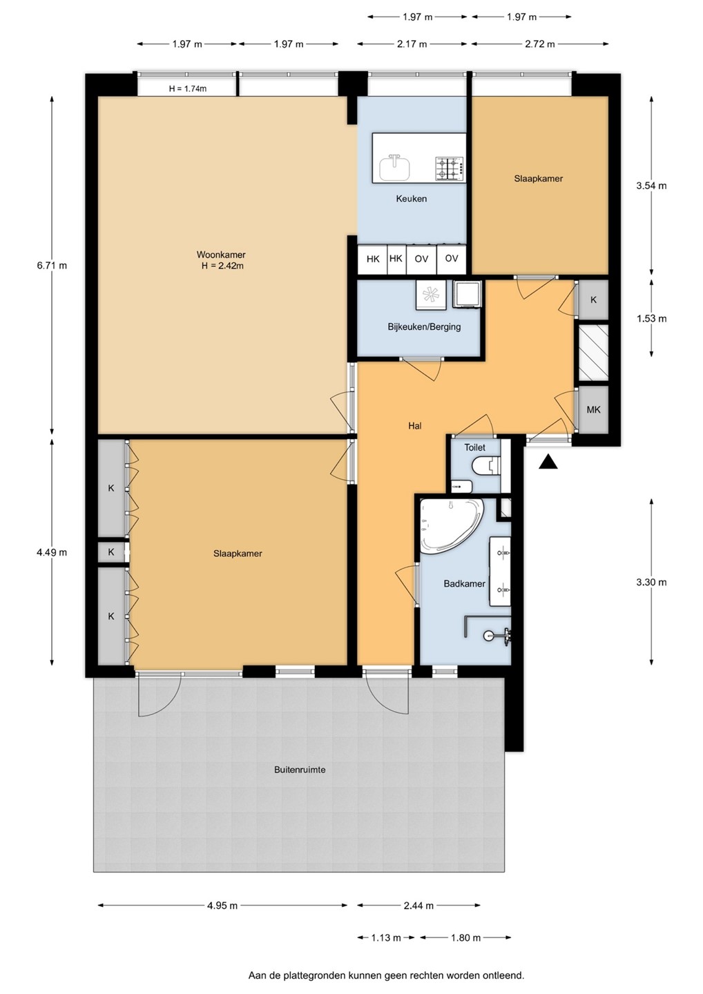 Kijk voor de afmetingen op de plattegronden. Ondanks de uiterste zorg die zowel makelaar als opdrachtgever aan de tekst en plattegronden besteden, kunnen hier geen rechten aan ontleend worden en zijn deze voor informatieve doeleinden. U bent van harte welkom om de woning te komen bezichtigen.