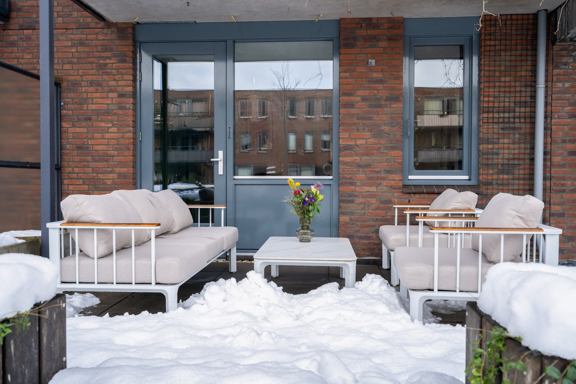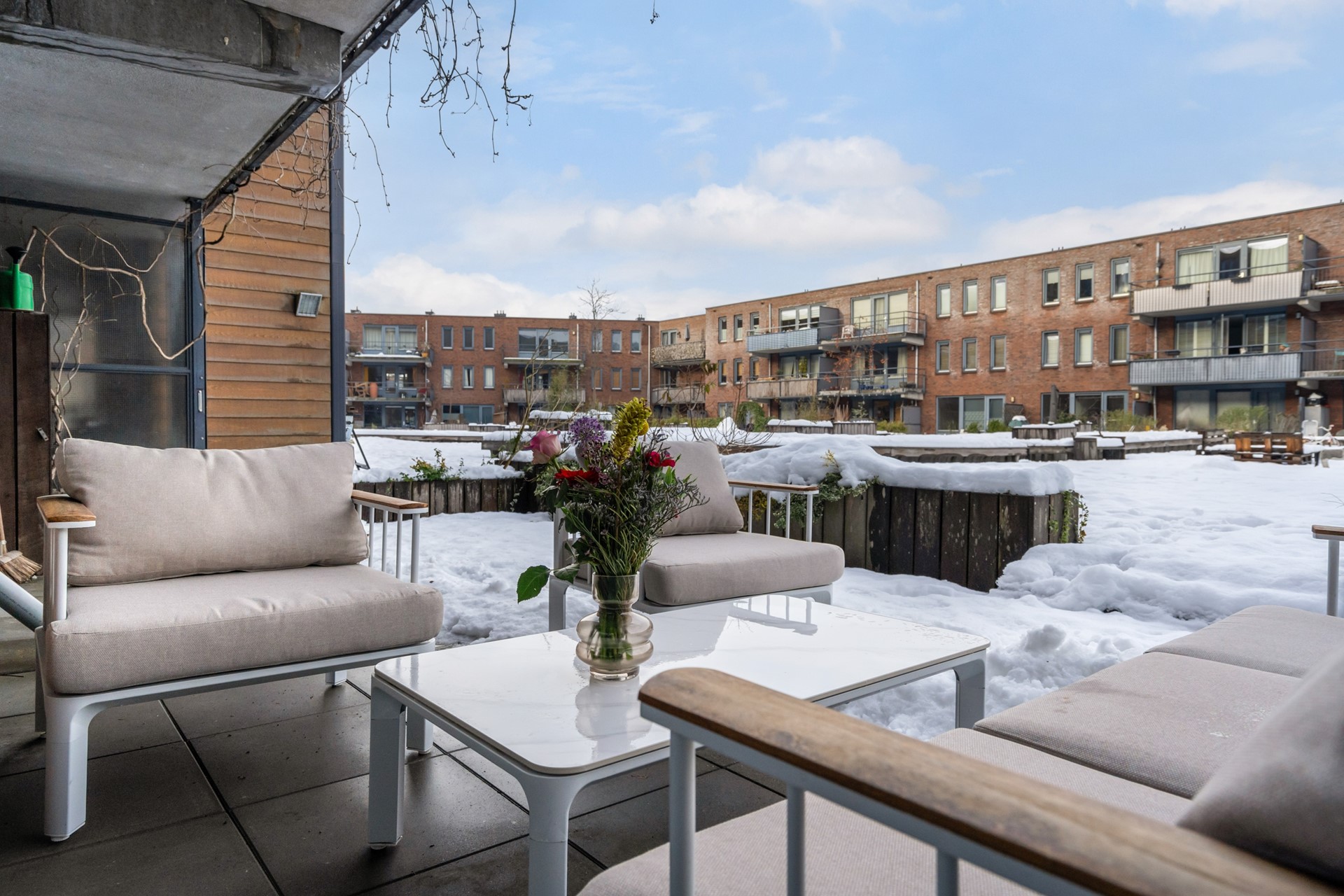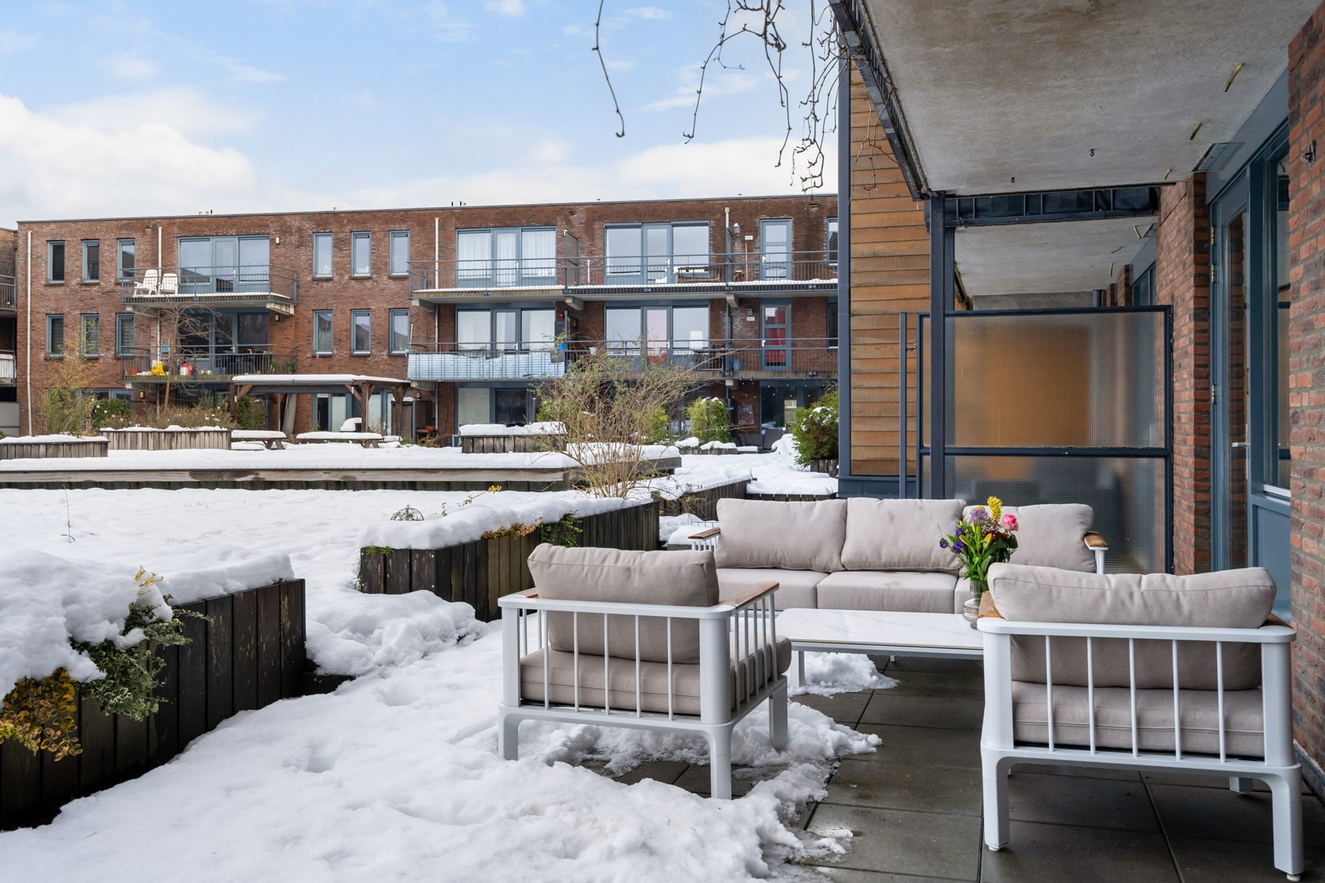 Het terras is aan de achterzijde van het complex gerealiseerd en kijkt daardoor lekker weg en doordat het complex zelf als buffer dient is het er heerlijk rustig zodat je na de werkdag nog fijn kunt ontspannen.